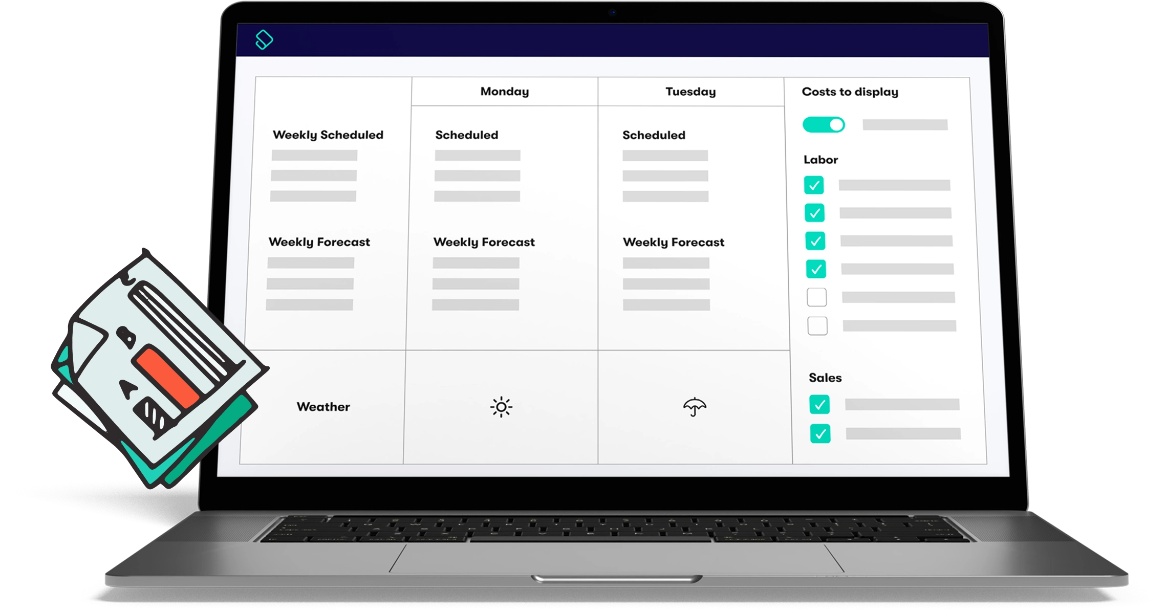 - Track labor costs, forecast labor-to-sales ratios, and monitor key KPIs while scheduling